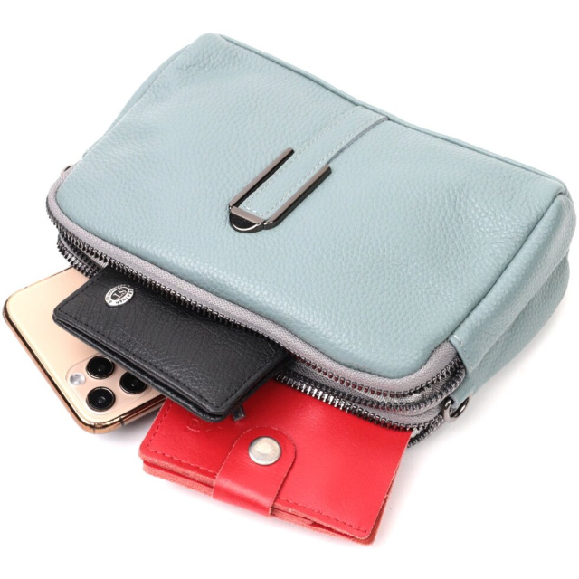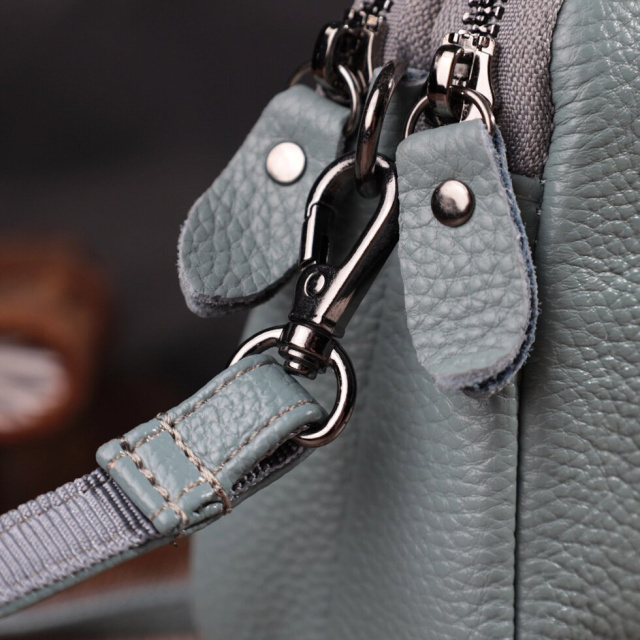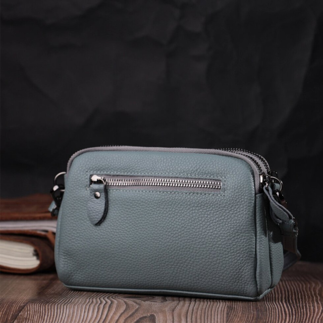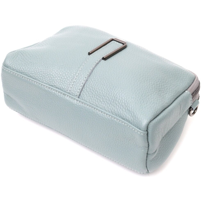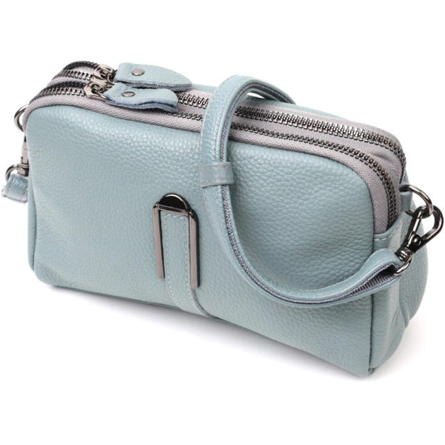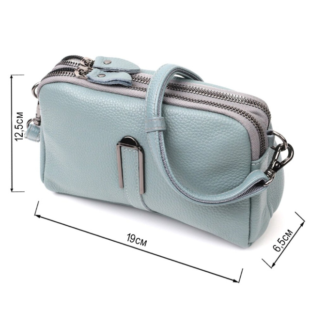 Гарна сумка для жінок невеликого розміру на два автономні відділення з натуральної шкіри флотар, яка невибаглива у догляді та довго носиться. Аксесуар складається з двох автономних відділень, кишені відкритого типу, потайної кишені на блискавці та зовнішньої кишені на блискавці, що знаходиться на тильній стороні. Носити сумку можна в руці, на зап'ясті для цього передбачений шкіряний кистьовий ремінь, що знімається, а також на плечі і через плече, для цього є шкіряний знімний ремінь. В аксесуарі використано якісну фурнітуру кольору срібла. Відмінний варіант сумки для жінок, які люблять якісні та стильні речі.
