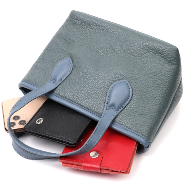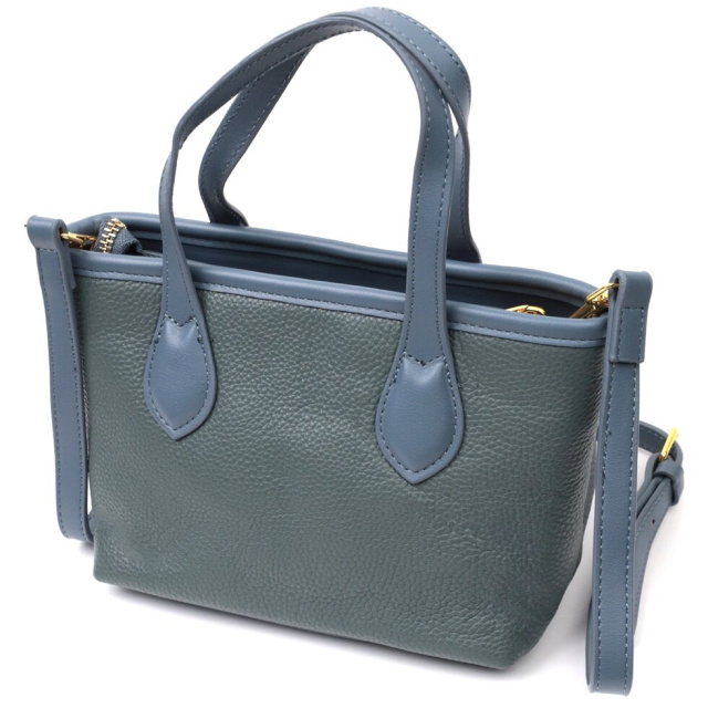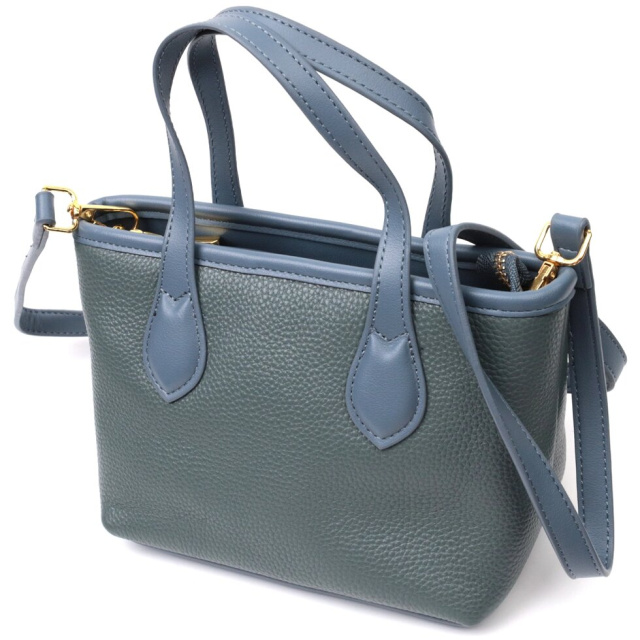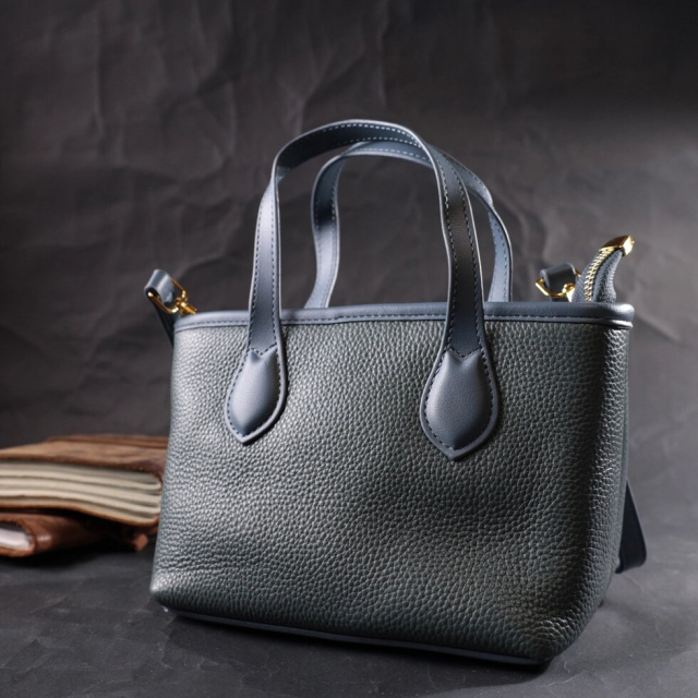 Зручна сумка з натуральної шкіри флотар, яка невибаглива у догляді та довго носиться. Аксесуар складається з одного основного відділення, потайної кишені на блискавці та кишені відкритого типу. Носити сумку можна в руці, на плечі і через плече, для цього є шкіряні ручки і шкіряний ремінь, що знімається. В аксесуарі використано якісну фурнітуру кольору жовтого золота. Шкіряна сумка – найкращий подарунок для будь-якої дівчини.