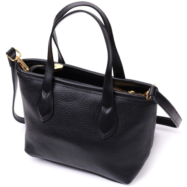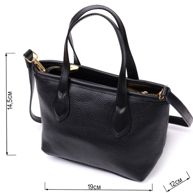 Жіноча сумка на кожен день з натуральної шкіри флотар, яка невибаглива у догляді та довго носиться. Аксесуар складається з одного основного відділення, потайної кишені на блискавці та кишені відкритого типу. Носити сумку можна в руці, на плечі і через плече, для цього є шкіряні ручки і шкіряний ремінь, що знімається. В аксесуарі використано якісну фурнітуру кольору жовтого золота. Шкіряна сумка – найкращий подарунок для будь-якої дівчини.