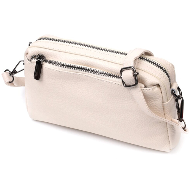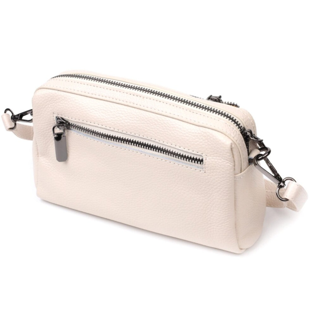 Стильна та зручна жіноча сумка на кожен день. Виріб пошитий з якісної шкіри, яка чудово носиться і не втрачає свого первісного вигляду. Аксесуар складається з одного основного відділення, потайної кишені на блискавці, кишені відкритого типу, двох зовнішніх кишень, що закриваються на блискавки. Носити сумку можна в руках, на плечі і через плече, для цього є шкіряний ремінь, що знімається. У виробі використано якісну фурнітуру кольору темного срібла. Універсальний варіант сумки як на вечір так і як сумочка на кожен день.