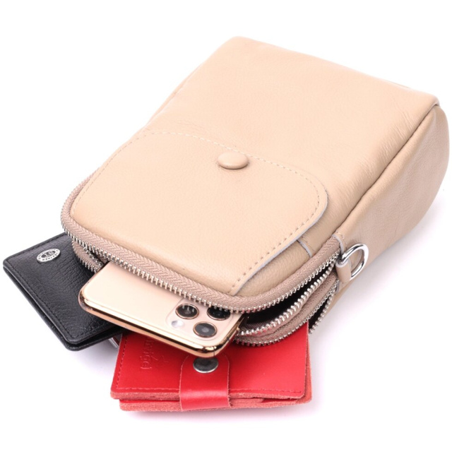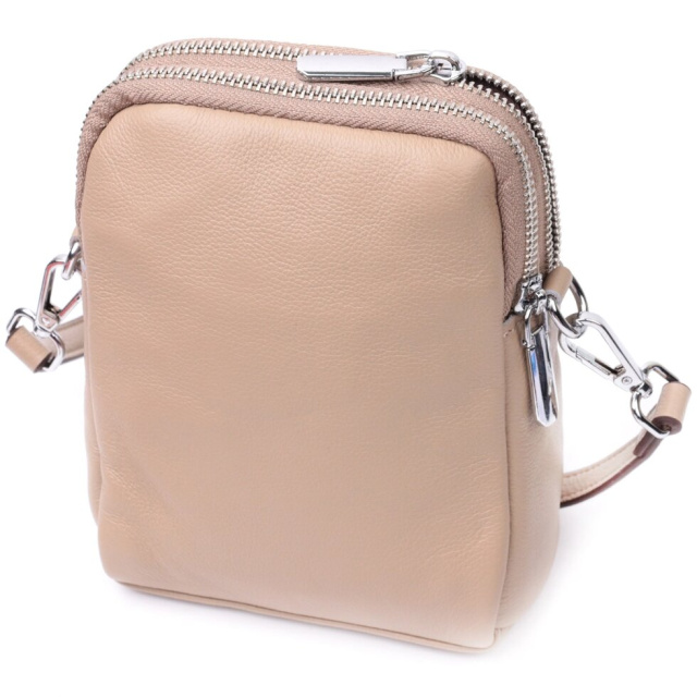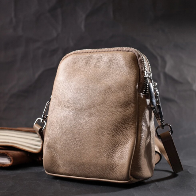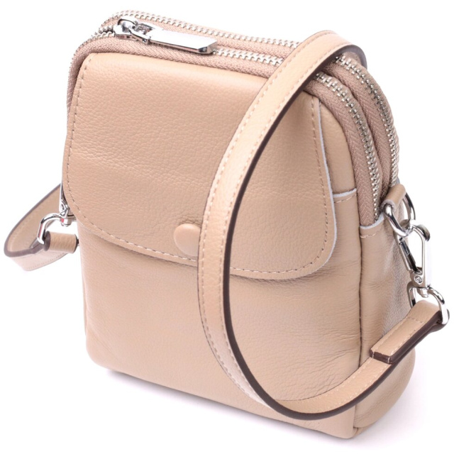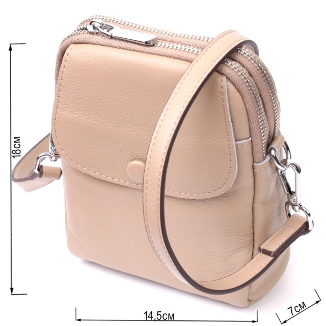 Красива сумка трапецієподібної форми для стильних та незалежних жінок. Виріб пошитий з якісної натуральної м'якої шкіри, яка довго носиться і не втрачає свого первісного вигляду. На лицьовій стороні розташована накладна кишеня, що закривається клапаном на магніт. Аксесуар складається з двох відділень, що закриваються на блискавки, всередині яких знаходиться потайна кишеня на блискавці та кишеня відкритого типу. Носити сумку можна на плечі і через плече, для цього є шкіряний ремінь, що знімається. У виробі використано якісну фурнітуру срібного кольору. Універсальний варіант сумки як на вечір так і як сумочка на кожен день.
