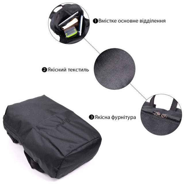 Міський рюкзак на кожен день модель підійде як жінкам, так і чоловікам. Аксесуар виготовлений з якісного матеріалу - поліестеру, знаменитого своєю міцністю та зносостійкістю. На лицьовій стороні посередині розташований вишитий логотип бренду, що є запорукою якості. Модель складається з одного великого відділення та чотирьох кишень різних розмірів, для більшої зручності та практичності. Носити рюкзак можна в руці, для цього призначена текстильна ручка, а також на спині, для цього є ущільнені лямки та ущільнена спинка. Фурнітура яка використовується в аксесуарі, якісна, прослужить не один рік, рядки рівні, акуратні краї. Універсальний не маркий рюкзак, який прослужить Вам не один рік і радуватиме око своїм первісним виглядом.
