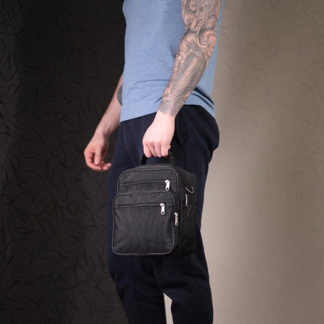 Вертикальна сумка середнього розміру на кожен день із якісного матеріалу – поліестеру. Виріб має зручний розмір та практичний функціонал, все для якісного використання. Аксесуар складається з одного просторого відділення та чотирьох кишень різних розмірів зовні, що дуже практично. У сумку чудово поміщається портмоне, документи, ключі та ще багато необхідних речей, які завжди мають бути під рукою. Носити аксесуар можна в руці за допомогою ручки і на плечі за допомогою надійного ременя, що знімається. Пошита сумка акуратно, всі рядки рівні, фурнітура надійна та якісна. На лицьовій стороні, у правому нижньому кутку, вишитий значок бренду, що є запорукою якості. Стильна сумка стане бажаним подарунком для ваших рідних і близьких і найголовніше дуже корисним і необхідним.