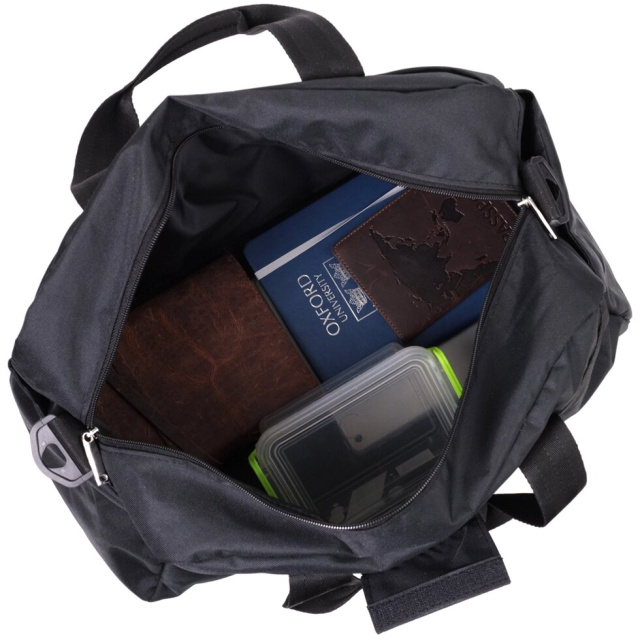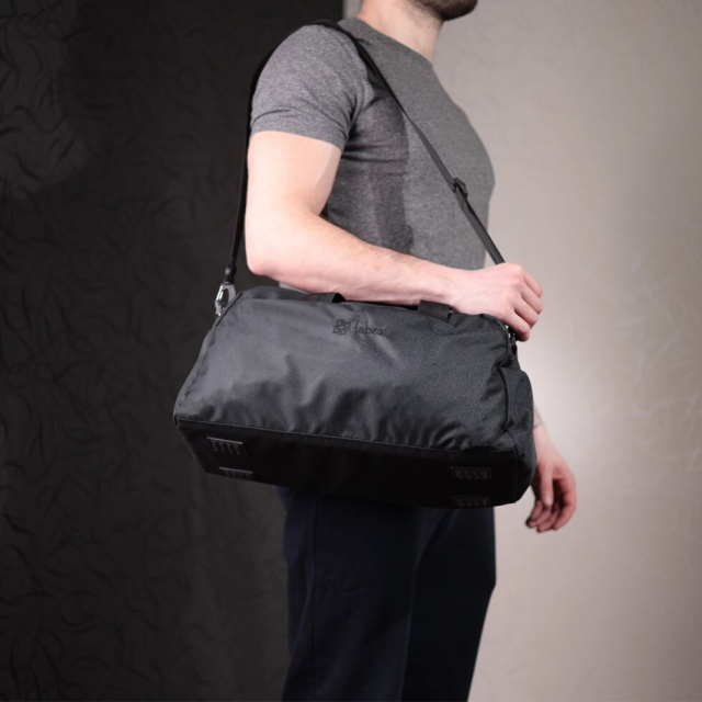 Дорожня сумка з якісного щільного матеріалу - поліестеру. На лицьовій стороні посередині розташований вишитий логотип бренду, що є запорукою якості. Виріб має невеликий розмір та практичний функціонал, все для Вашої зручності та практичного використання. Таку сумку зручно брати із собою у невеликі подорожі, на тренування, а також у невеликі вилазки за місто. Аксесуар складається з одного просторого відділення та трьох кишень різних розмірів зовні, що дуже зручно. Носити аксесуар можна в руках, за допомогою текстильних ручок із з'єднувачем на липучці для більшої зручності, а також на плечі, для цього передбачений ремінь, що знімається. Пошита сумка акуратно, всі рядки рівні, міцна підкладка - чорного кольору, фурнітура надійна і якісна. Стильна сумка стане бажаним подарунком для ваших рідних і близьких і найголовніше дуже корисним і необхідним.