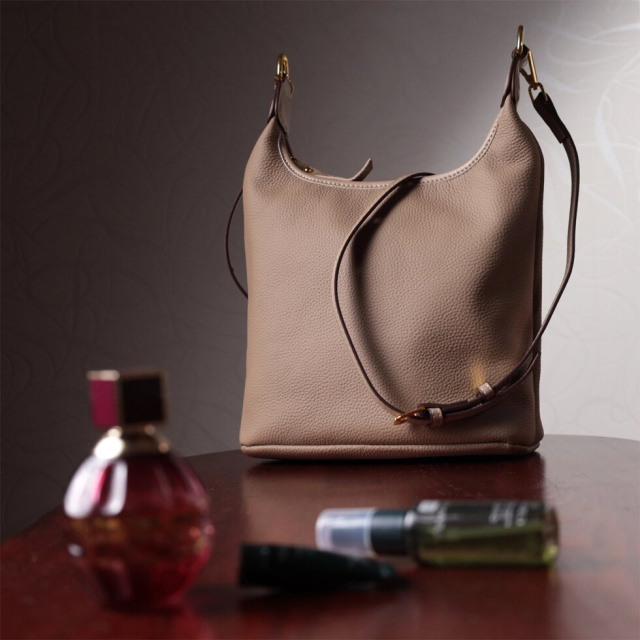 Ділова жіноча сумка середнього розміру з натуральної якісної шкіри. Аксесуар складається з основного відділення, яке закривається на блискавку, потайної кишені на блискавці та кишені відкритого типу всередині, а також кишені на блискавці зовні на тильній стороні. Носити сумку можна в руці і на плечі, для цього є шкіряний ремінь, що знімається. В аксесуарі використано якісну фурнітуру кольору золота.