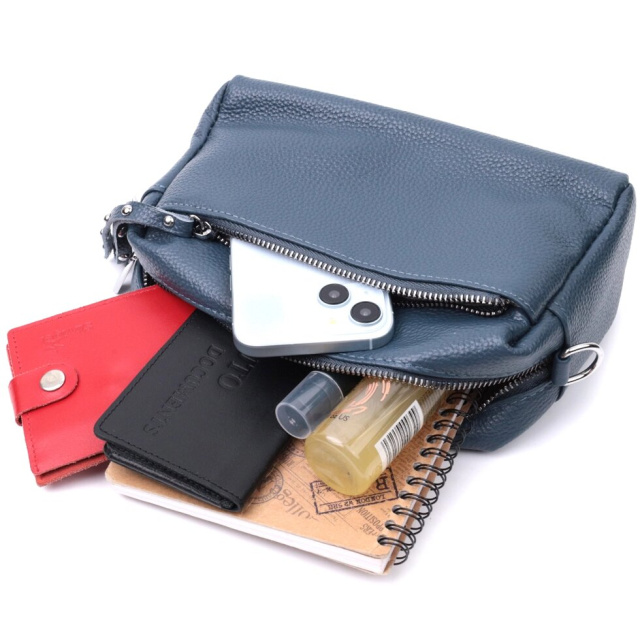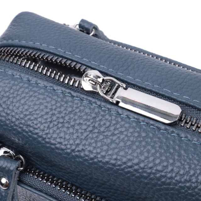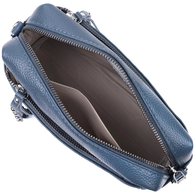 Ідеальна за розміром сумка для жінок із натуральної шкіри. Аксесуар складається з основного відділення, що закривається на блискавку, кишені на блискавці та кишені відкритого типу всередині, двох кишень на блискавках зовні, на тильній та лицьовій стороні. Носити сумку можна на плечі і через плече, для цього є текстильний ремінь, що знімається.