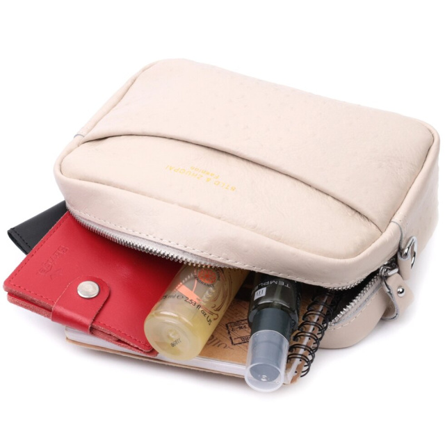 Жіноча сумка на кожен день із натуральної шкіри. Аксесуар складається з основного відділення, що закривається на блискавку, кишені на блискавці та кишені відкритого типу всередині та двох кишень зовні, на лицьовій та тильній стороні. Носити сумку можна на плечі і через плече для цього є текстильний ремінь, що знімається.