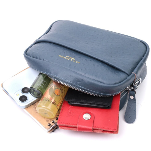 Відмінна жіноча сумка на кожен день із натуральної шкіри. Аксесуар складається з основного відділення, що закривається на блискавку, кишені на блискавці та кишені відкритого типу всередині та двох кишень зовні, на лицьовій та тильній стороні. Носити сумку можна на плечі і через плече для цього є текстильний ремінь, що знімається.