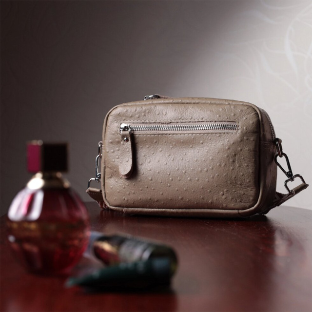 Зручна жіноча сумка на кожен день із натуральної шкіри. Аксесуар складається з основного відділення, що закривається на блискавку, кишені на блискавці та кишені відкритого типу всередині та двох кишень зовні, на лицьовій та тильній стороні. Носити сумку можна на плечі і через плече для цього є текстильний ремінь, що знімається.