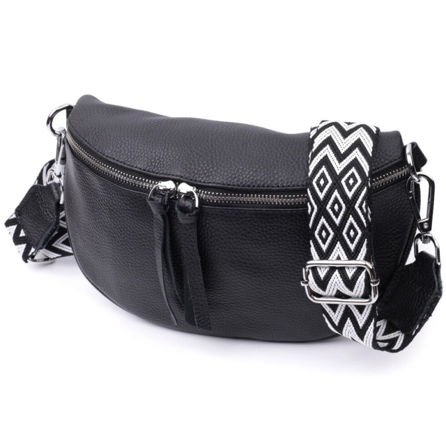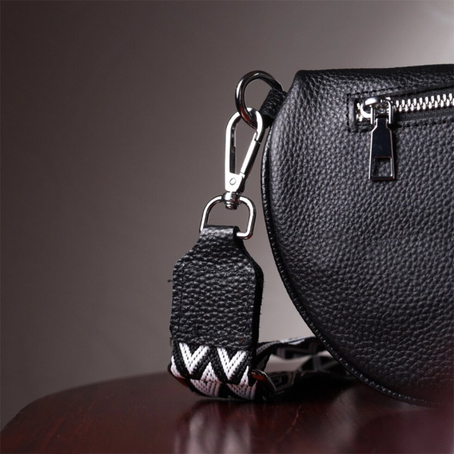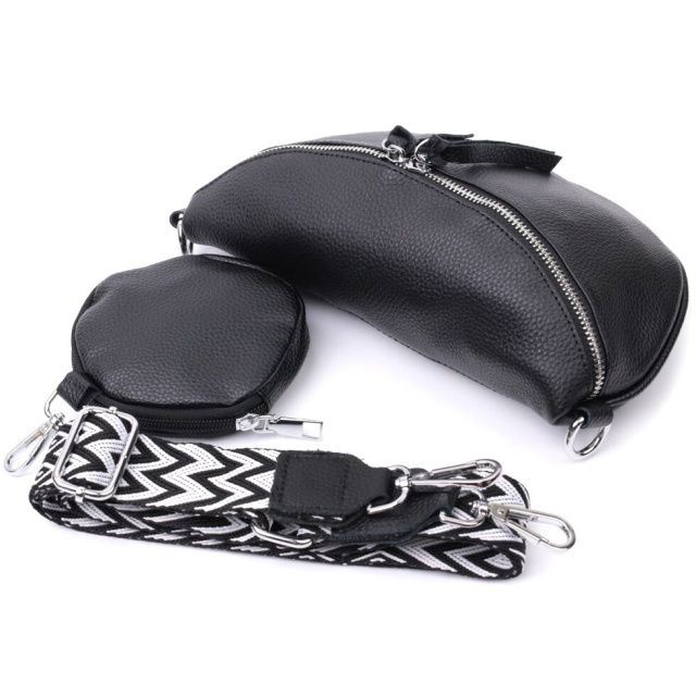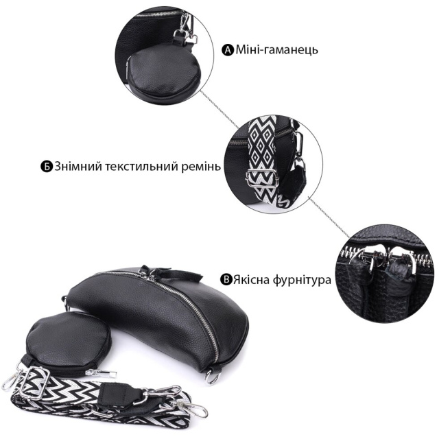 Жіноча сумка через плече з натуральної шкіри флотар, яка невибаглива у догляді та довго носиться. Аксесуар складається з основного відділення, кишені на блискавці всередині, а також міні-гаманця, що знімається. Носити сумку можна на плечі і через плече, для цього є текстильний ремінь, що знімається. В аксесуарі використано якісну фурнітуру кольору срібла.