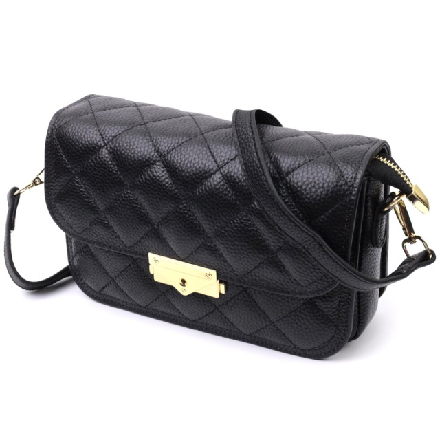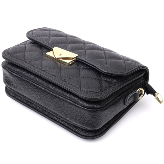 Вечірня сумка для жінок з натуральної шкіри флотар, яка невибаглива у догляді та довго носиться. Виріб повністю прошито стильними ромбами, які ніколи не виходять з моди. Аксесуар складається з основного відділення, кишені відкритого типу та потайної кишені на блискавці всередині, а також чотирьох кишень під клапаном. Носити сумку можна в руці, під рукою, на плечі і через плече, для цього є шкіряний ремінь, що знімається. В аксесуарі використано якісну фурнітуру кольору жовтого золота. Універсальний варіант сумки на вечір та на кожен день.