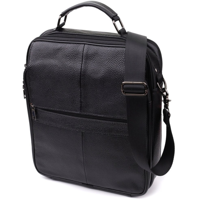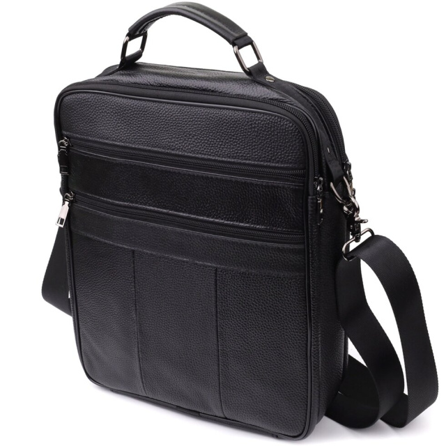 Практична шкіряна сумка виконана з високоякісної натуральної шкіри та поєднує в собі функціональність та стиль. Модель оснащена двома основними відділеннями на блискавці, одне з яких включає таємну кишеню на блискавці на задній стінці для надійного зберігання важливих дрібниць.