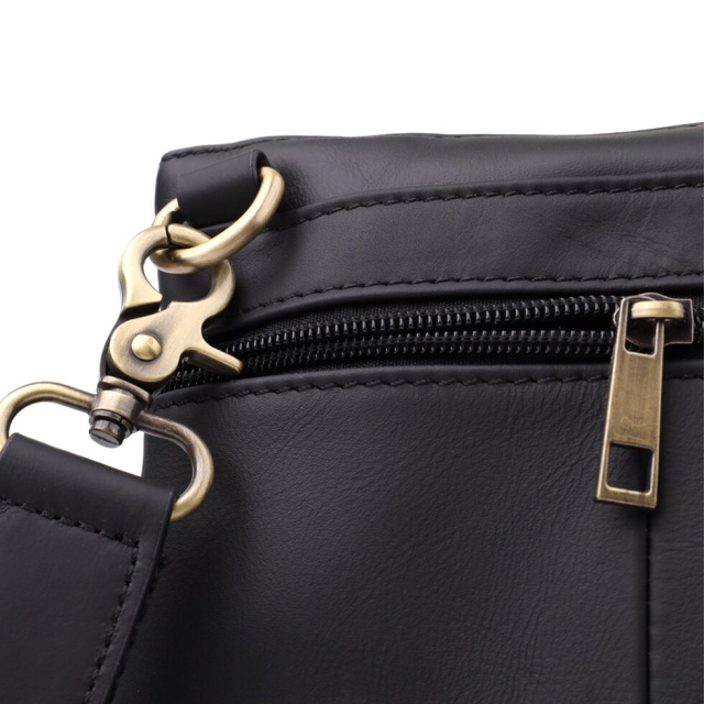Фурнітура виконана в кольорі "під латунь", що надає виробу благородного та чоловічого характеру. Сумка доповнена шкіряним ремінцем, що знімається, з регулюванням довжини, що дозволяє носити її як на плечі, так і через плече, забезпечуючи комфорт у русі.