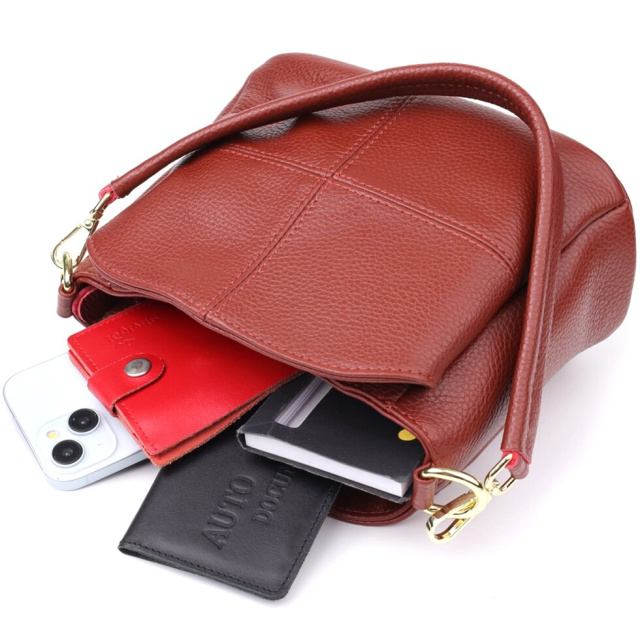 Елегантна жіноча шкіряна сумка червоного кольору - ідеальне поєднання стилю, функціональності та вишуканості. Ця модель стане яскравим акцентом у будь-якому образі — будь то повсякденна цибуля або діловий гардероб. Виконана з якісної натуральної шкіри, сумка привертає увагу насиченим червоним кольором та продуманою конструкцією, що забезпечує зручність та організованість.