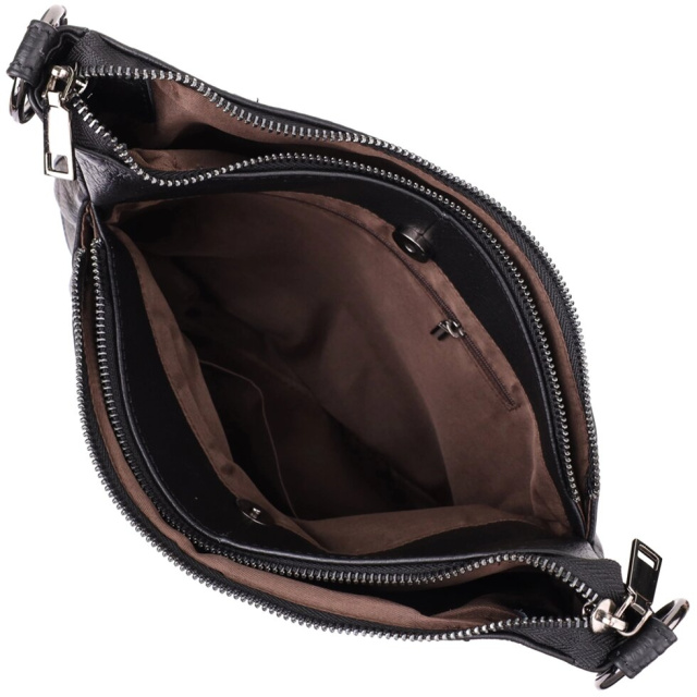 Чорна шкіряна сумка з трьома відділеннями – це універсальне рішення на кожен день: строга, але жіночна, містка, але компактна.