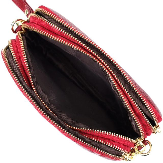 Функціональна конструкція включає три окремі відділення, кожне з яких закривається на блискавку. Це забезпечує ідеальну організацію внутрішнього простору: зручно розподіляйте документи, косметику, гаджети та особисті речі без зайвого безладдя. Усередині передбачена потайна кишеня на блискавці, що ідеально підходить для зберігання особливо цінних дрібниць.