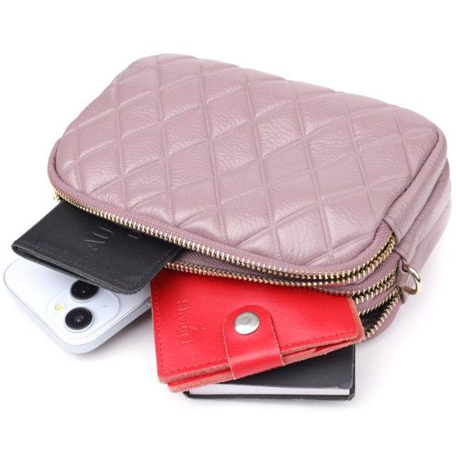 Ця шкіряна стьобана сумка на три відділення - ідеальний вибір для жінок, які цінують комфорт, порядок та бездоганний зовнішній вигляд у кожному образі.