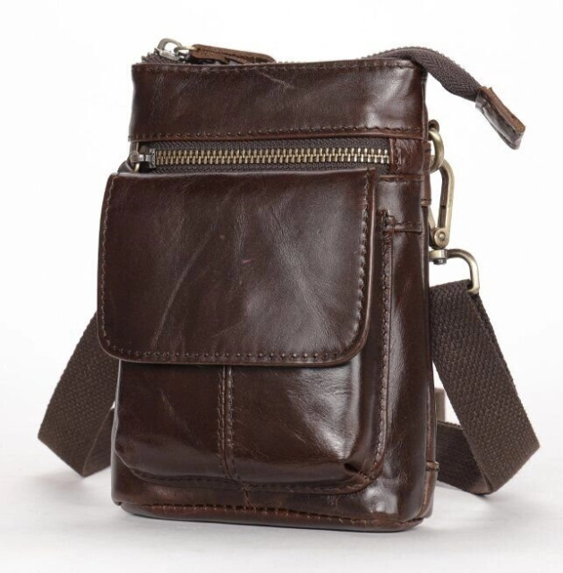 Компактна чоловіча сумка на кожен день. Сумка приємна на дотик і виглядає по вінтажному. Аксесуар має потертості, що надає йому ефекту старовини. Модель доповнена міцною золотистою фурнітурою в дизайн аксесуара. У комплекті йде зйомний текстильний ремінь коричневого кольору, а також карабін для вашої зручності. Ви також можете причепити на нього ключі. Усередині коричнева підкладка з якісного текстилю. Сумка прослужить не один рік і буде ідеальним подарунком з будь-якого приводу.