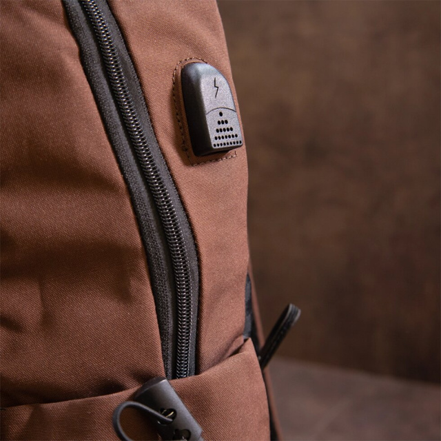 Легкий дорожній рюкзак під ноутбук з текстилю. Рюкзак дуже легкий і має практичний і зручний коричневий колір. У комплекті до рюкзака йде шнур. Виріб вміщує в себе ноутбук. Всередині - якісна підкладка сірого кольору. Виробництво - фабричний Китай високої якості. Текстильний рюкзак - ідеальний варіант в дорогу або для спорту. Модель має безліч кишеньок для вашої зручності і стане прекрасною покупкою для вас і ваших близьких.