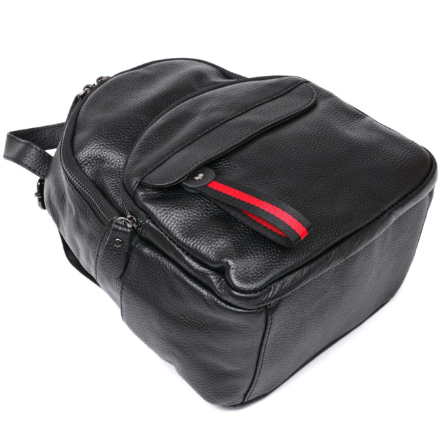 Невеликий жіночий рюкзак у стильному та модному дизайні. Матеріал виготовлення – натуральна шкіра високого класу із підвищеною міцністю. Рюкзак має одне основне відділення та кілька зовнішніх кишень, що дуже зручно та практично. Колір виробу – класичний чорний, фактура – зерниста. Ця модель безсумнівно стане чудовим подарунком для дочки, подруги чи дівчини.