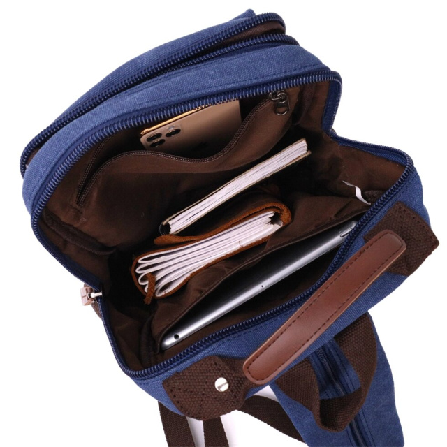 Чоловічий багатофункціональний рюкзак із міцного текстилю. Виріб підійде як для роботи, так і в дорогу, легко переться і зовсім не вибагливий у догляді. З таким аксесуаром у вас усі особисті речі під рукою – а значить у безпеці. Модель дуже практична та універсальна, її можна носити в руці, на спині, на плечі та через плече. Якщо ви давно шукаєте рюкзак, який підійде на кожен день – рекомендуємо Вам цю модель.