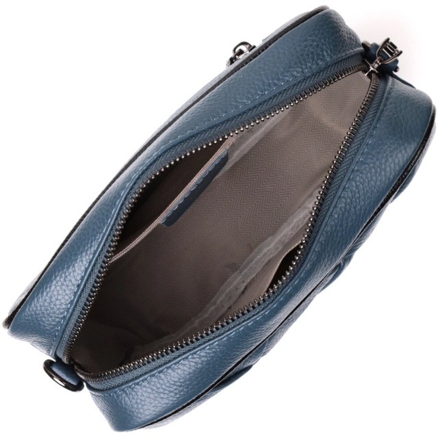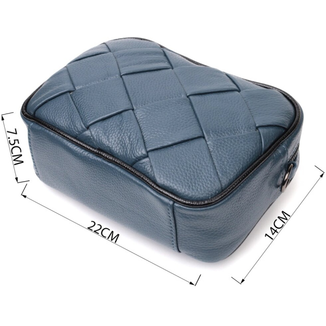 Модна жіноча сумка з ромбоподібною палітуркою на лицьовій стороні. Виріб пошитий з якісної натуральної шкіри, яка довго носиться і не втрачає свого первісного вигляду. Аксесуар складається з одного основного відділення всередині якого розташована кишеня відкритого типу і кишеня на блискавці, також зовні розташована кишеня на блискавці, на тильній стороні. Носити сумку можна в руці як клатч, на плечі та через плече, для цього є текстильний ремінь, що знімається. У виробі використано якісну фурнітуру кольору темного срібла. Універсальний варіант сумки як на вечір так і як сумочка на кожен день.
