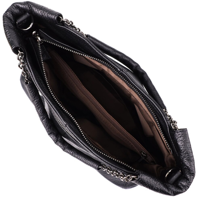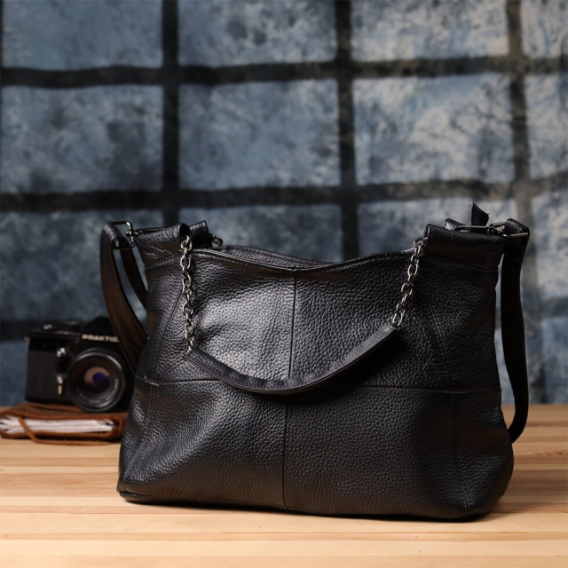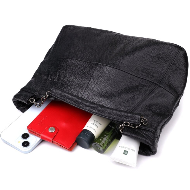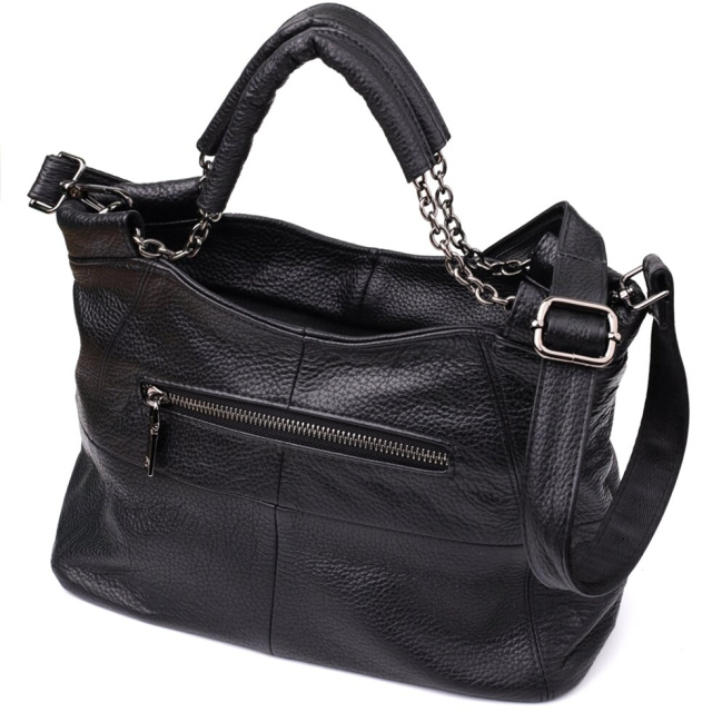 Ця чорна шкіряна сумка від бренду Vintage – ідеальний вибір для жінок, які цінують універсальність, стиль та практичність в одному аксесуарі.