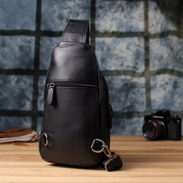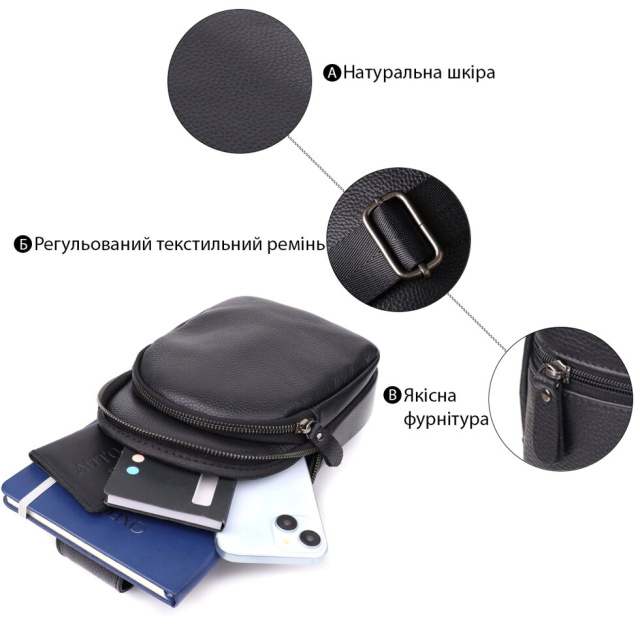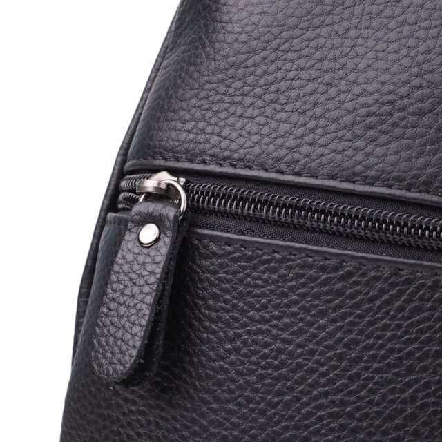 Шкіряна сумка через плече – практичний та стильний аксесуар на кожен день. Виготовлена із міцної зернистої шкіри флотар, стійка до зносу та деформацій. Зручна організація внутрішнього простору: містке основне відділення на блискавці, потайна кишеня та додаткові відділення для дрібниць. На лицьовій стороні — накладна та вбудована горизонтальна кишені на блискавці, на тильній — ще одна кишеня для швидкого доступу. Регульований ремень дозволяє комфортно носити сумку через плече, звільняючи руки. Відмінний вибір для тих, хто цінує якість та зручність у повсякденних аксесуарах.