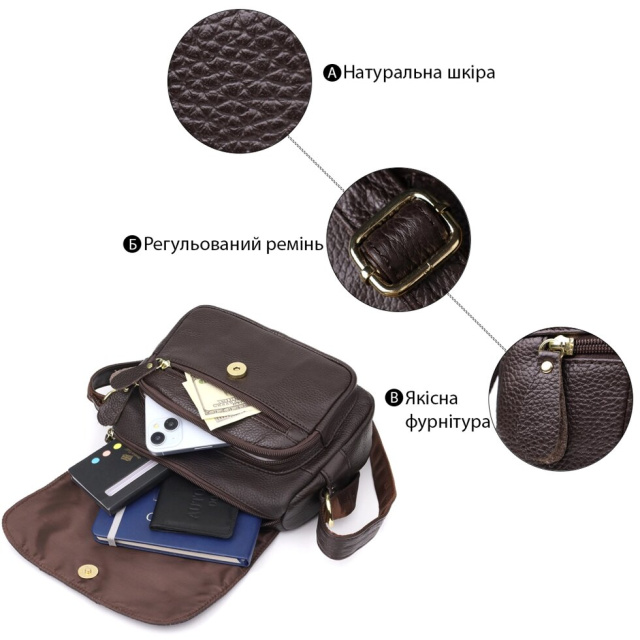 Ця шкіряна сумка на плече - ідеальний вибір для жінок, які цінують практичність, стиль та порядок у кожній деталі.