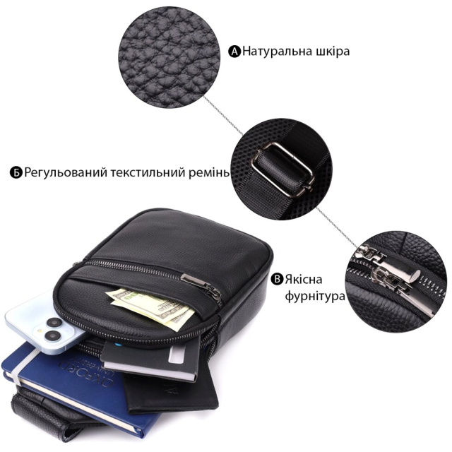 Чоловіча шкіряна сумка через плече — практичний та стильний аксесуар для повсякденного використання, що поєднує комфорт і функціональність. Виконана з натуральної шкіри з акцентом на мінімалізм та зручність, ця модель стане надійним супутником у місті, на прогулянці чи поїздці.