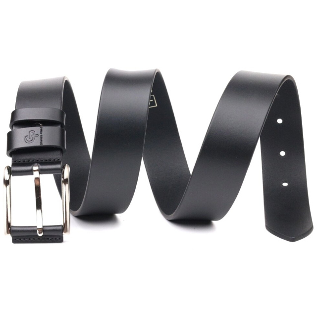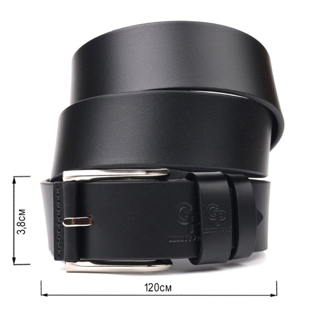 Стильний шкіряний ремінь чорного кольору з натуральної шкіри від українського виробника. Хороший ремінь здатний ідеально завершити образ та підкреслити ваш статус. Ремінь виготовлений із цілісного полотна шкіри. Аксесуар має гладку фактуру, акуратно пошитий, довжина регулюється у менший бік. Доповнено ремінець сріблястою пряжкою з гострими кутами. Шкіряний ремінь один із найвдаліших та потрібних подарунків для будь-якого чоловіка.