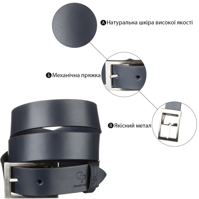 Вишуканий чоловічий ремінь виготовлений з високоякісної італійської натуральної шкіри. Розкішний зовнішній вигляд йому надає синій колір і строгий, стриманий дизайн. Аксесуар виглядає стримано і відмінно підійде для тих, хто цінує практичність і якість. Сучасний висококласний ремінь для стильних і яскравих чоловіків.