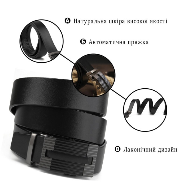 Солідний діловий ремінець з натуральної шкіри найвищої якості. Модель з цільного полотна класичного чорного кольору. Якісний ремінь незамінний в гардеробі будь-якого чоловіка. Автоматична пряжка дуже практична і легка у використанні. Виробництво - фабричний Китай. Ми впевнені, що ремінь прослужить вам далеко не один рік. Виріб виконаний з урахуванням всіх модних тенденцій і нічим не поступається популярним брендам. Аксесуар буде прекрасним подарунком для будь-якого чоловіка.