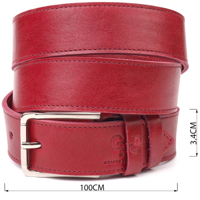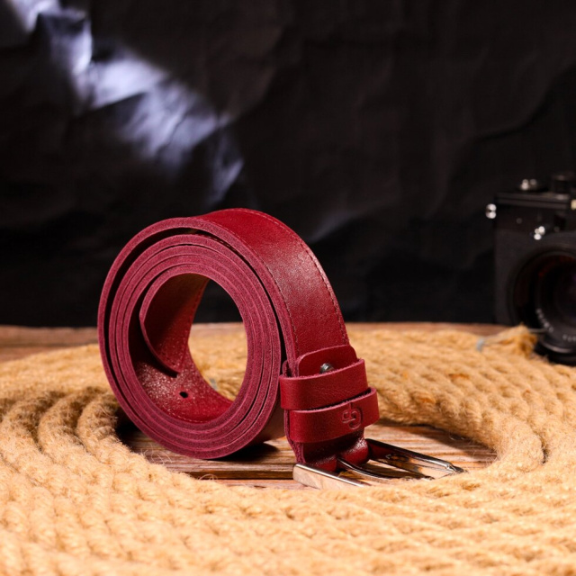 Привабливий жіночий ремінь із високоякісної італійської шкіри. Виріб прошито по краях рівним рядком бордового кольору, що надає йому стильного та вишуканого вигляду. Аксесуар буде відмінно поєднуватись, як із брюками, так і з джинсами. Пряжка виконана з якісної фурнітури, із закругленими краями, дуже акуратна та стильна. Колір пряжки: срібло. Тиснення логотипу бренду додає виробу стилю, а також є запорукою якості та оригінальності продукції. Шкіряний ремінь буде завжди актуальним подарунком для себе, подруги чи колеги.