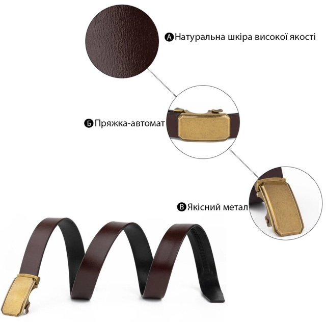Діловий чоловічий ремінь коричневого кольору з натуральної шкіри. Модель виготовлена з цільного полотна. Дизайн продуманий до самих дрібниць. Аксесуар красиво переливається на сонці надаючи вашому образу завершеності і елегантності. Пряжка ременя виконана з міцного металу латунного кольору. Ремінь незамінна річ в гардеробі будь-якого чоловіка. Особливо якщо ремінь з якісного матеріалу він буде служити вам значно довше. Варто відзначити, що якість ременя нічим не поступається дорогим брендам, але цінник - на порядок нижче. Рекомендуємо вам дану модель як для себе, так і для своїх близьких.