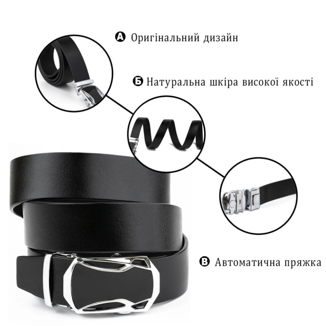 Чоловік шкіряний ремінь класичного чорного кольору з чорною оригінальною вставкою на пряжці. Виріб виконаний з натуральної шкіри. Пряжка - сріблястого кольору. Модель прекрасно підійде під будь-який образ. Якісний ремінь - обов'язковий елемент гардероба будь-якого чоловіка. Ремінь - автомат дуже практичний у використанні і прослужить вам далеко не один рік. Ремінець прекрасно підійде в якості подарунка для будь-якого чоловіка.