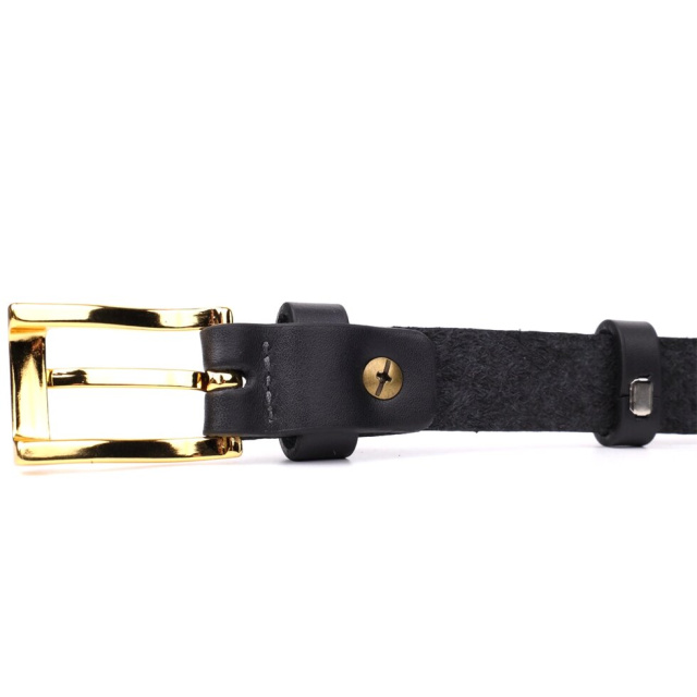 Стримана прямокутна механічна пряжка кольору під жовте золото додає ременя вишуканості та підкреслює жіночність, а тиснений логотип бренду є акцентом на оригінальність та преміальну якість виробу.