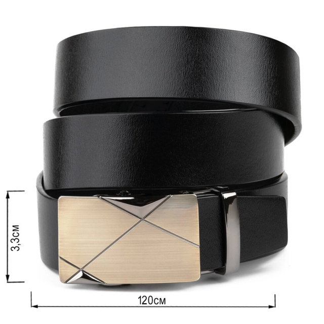 Чорний чоловічий ремінь з автоматичною пряжкою. Виріб виготовлено з натуральної шкіри найвищої якості. Доповнено ремінь оригінальною пряжкою з діагональним візерунком. Пряжка виконана з якісного сплаву. Ви можете не переживати - модель прослужить вам далеко не один рік. Шкіряний ремінь - незамінний аксесуар для будь-якого чоловіка. Він підійде і під джинси і під штани, при цьому ідеально точно підкреслюючи ваше відмінне почуття стилю. Виріб також стане прекрасним подарунком для будь-якого чоловіка. А найголовніше дуже потрібним.