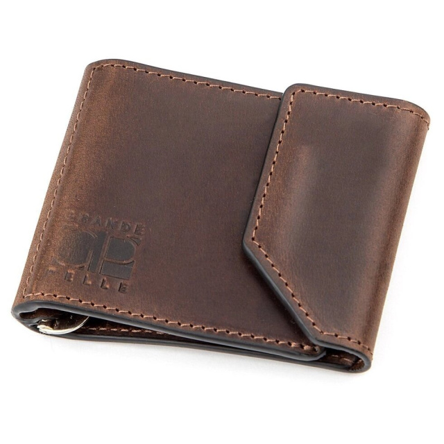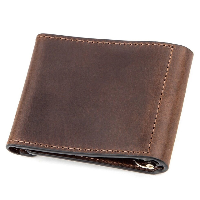 Вінтажний затискач для купюр з якісної італійської шкіри. Аксесуар дуже компактного розміру. Затискач поміститься у вашу кишеню чи маленьку сумку. Ідеально підкреслить ваше ставлення до дрібниць і почуття стилю. Згодом на такій шкірі з'являються дрібні потертості, що надає аксесуару ефекту старовини і розкоші. Виглядає аксесуар дуже дорого. На зовнішній стороні затискач має логотип бренду. Аксесуар буде бажаним подарунком для близької людини. Модель упакована в фірмовий повстяний чохол.