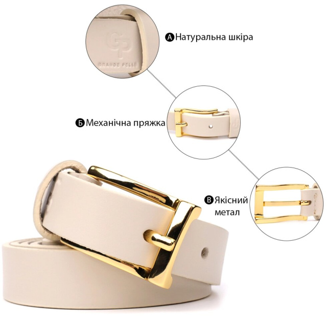 Жіночий ремінь від українського бренду GRANDE PELLE - елегантний аксесуар, що поєднує ніжність і практичність.