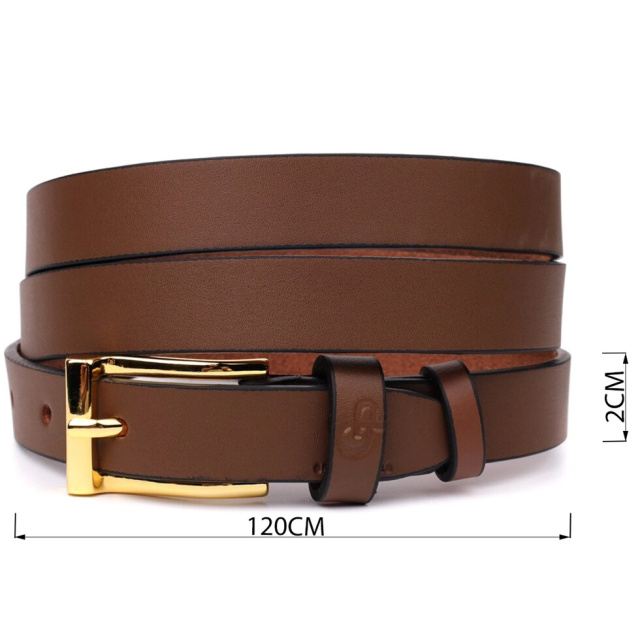 Виготовлений з натуральної шкіри високої якості, ремінь відрізняється міцністю та довговічністю. Його параметри – ширина 2 см та довжина 120 см – забезпечують універсальність: він однаково добре підходить як для класичних штанів та спідниць, так і для джинсів чи суконь.