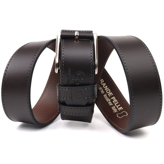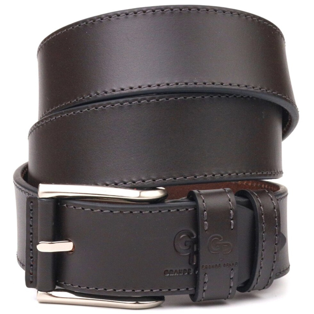 Класичний ремінь із натуральної італійської шкіри, в коричневому кольорі від українського виробника. Аксесуар має гладку фактуру, акуратно прошитий по краю рівним рядком, довжина регулюється в меншу сторону. Пряжка класична в мінімалістичному дизайні, виробник використовує виключно італійську фурнітуру, яка не темніє, не дряпається та не викликає алергії. Ця модель універсальна, оскільки її можна носити і з джинсами, і з брюками. Якісний шкіряний ремінь стане гарним подарунком на будь-яке свято.