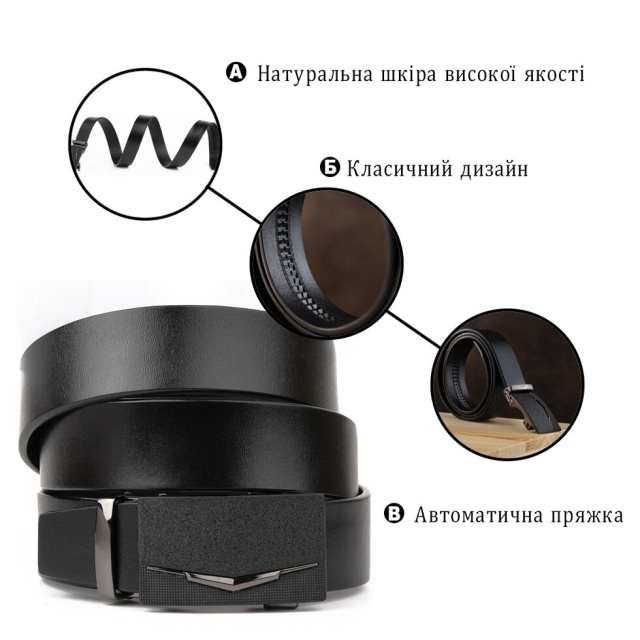 Солідний і діловий чоловічий ремінь з автоматичною пряжкою. Модель складається із стильної пряжки з матовою чорною вставкою і щільного шкіряного полотна. Ви можете бути впевнені в якості ременя. Виробництво - фабричний Китай. Виріб дуже практичний і універсальний і не вимагає додаткового догляду. Стильний дизайн ременя виділить вас з натовпу і підкреслить вашу індивідуальність. Виріб стане прекрасним подарунком для близької людини.