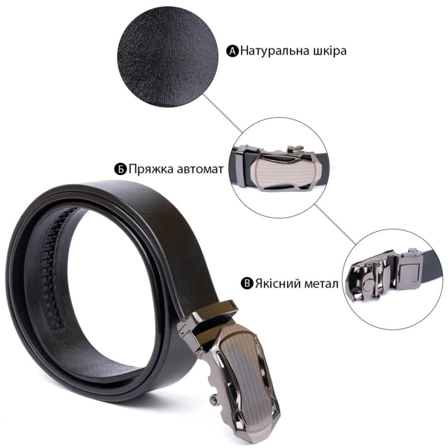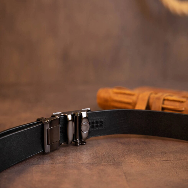 Ремінь з натуральної шкіри - must have для кожного чоловіка. Класичний чорний колір робить модель особливо привабливою. Масивна, щільна автоматична пряжа підкреслить правильність вашого вибору. Ремінь не залишиться непоміченим оточуючими. Ремінь ідеально підійде під будь-який ваш образ. Полотно ремінця дуже якісне. Впевнені, що ремінь прослужить вам далеко не один рік і стане улюбленим аксесуаром у гардеробі. У нашому магазині ви можете придбати подарункову упаковку. Ремінь підійде для чоловіків, які цінують високу якість і стильність.
