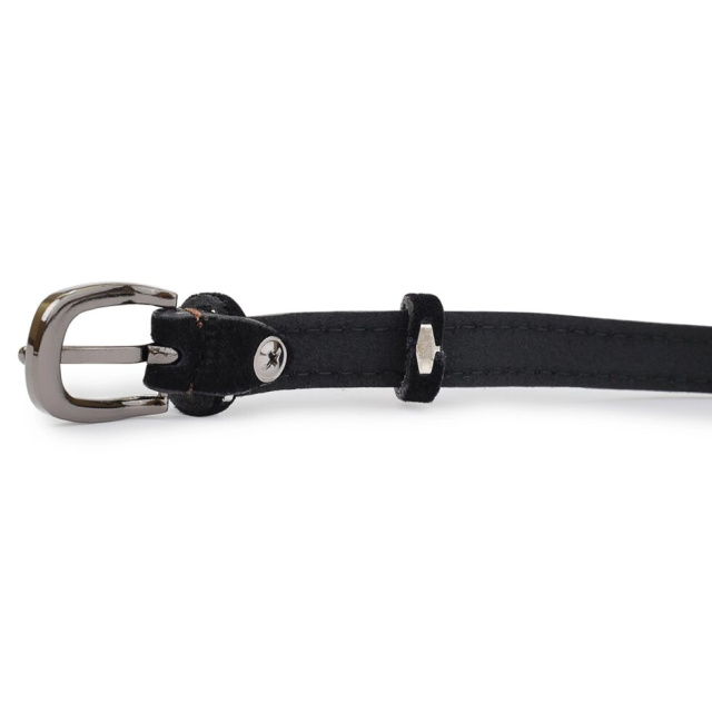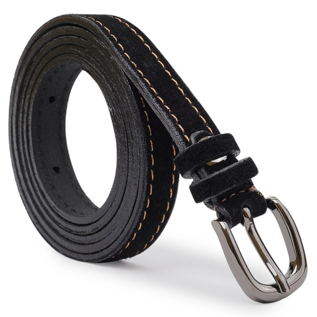 Оригінальний чорний замшевий ремінь зі світло-коричневим рядком по краях, що виглядає дуже красиво і ефектно. Виготовлений з натуральної шкіри з відмінними експлуатаційними характеристиками. Якість виробу видно неозброєним оком, тому ремінь прослужить Вам дуже довго.