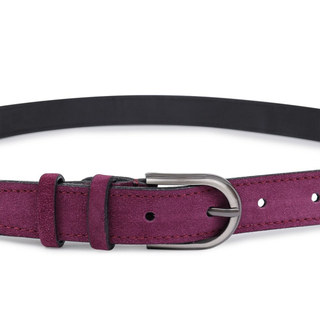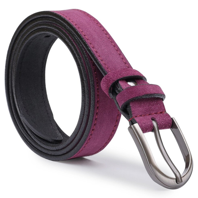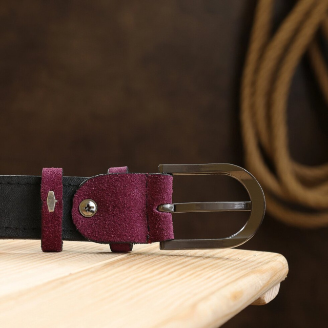 Чудовий жіночий замшевий ремінь в дивовижно красивому фіолетовому кольорі. Має класичну пряжку і приємну фактуру. Такий ремінь, безсумнівно, стане виразним акцентом будь-якого образу. Матеріал виготовлення - натуральна зносостійка шкіра. Для подарунка коханій жінці кращого ременя просто не знайти!