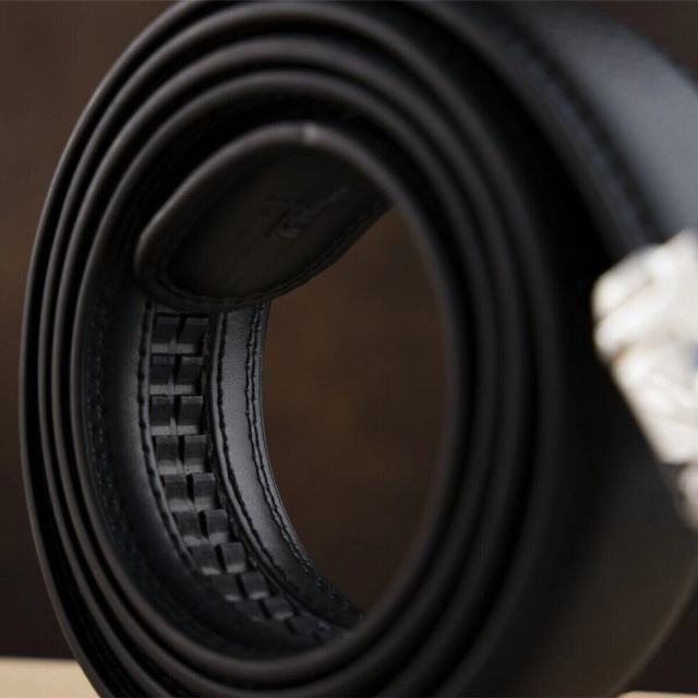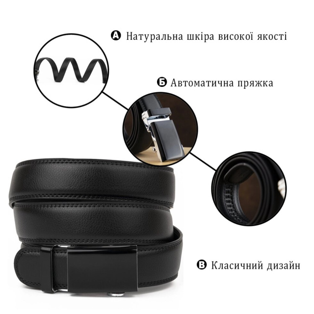 Якісний чоловічий ремінь виконаний з цілісного полотна. Виріб має стильний дизайн з подвійною строчкою по краях чорного кольору. Аксесуар доповнено пряжкою чорного кольору з міцного металу. Тонкий ремінь прекрасно підійде під класичні брюки і ідеально доповнить ваш образ. Ми впевнені, що ремінь не залишить байдужим будь-якого чоловіка. Якість аксесуара нічим не поступається дорогим брендам, але при цьому коштує набагато дешевше. Шкіряний ремінь стане найкращим подарунком для будь-якого чоловіка.