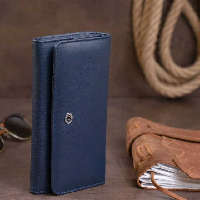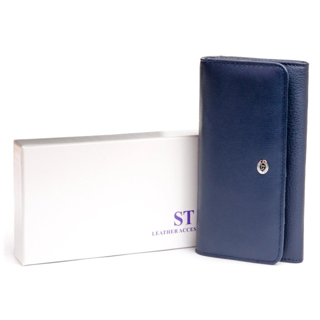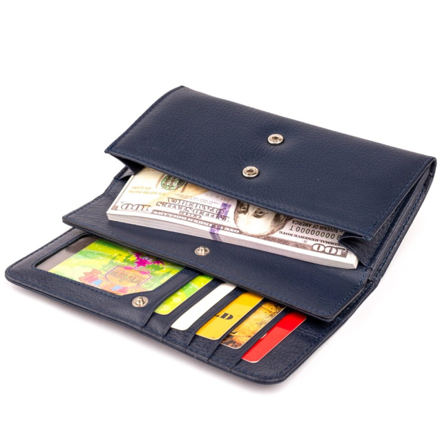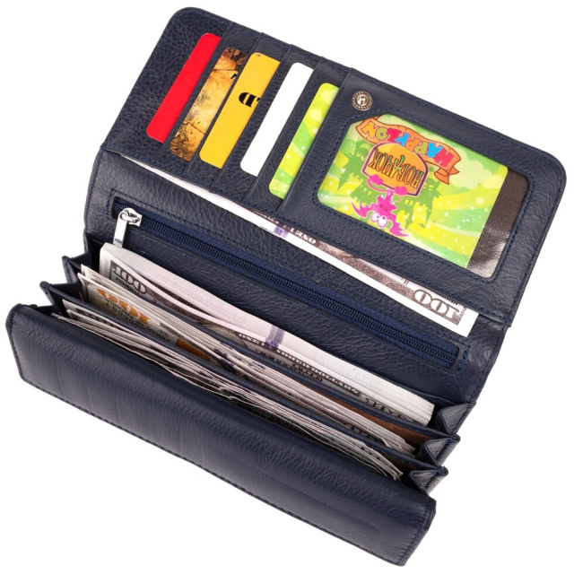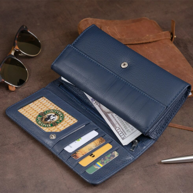 Витончений жіночий гаманець приглушеного синього кольору. Гаманець в два складання. Усередині виріб виконано з натуральної шкіри. Шкіра з якої виконаний гаманець м'яка і еластична. Такий гаманець ідеально підкреслить вашу індивідуальність. Витончений і продуманий до дрібниць дизайн підкорить будь-яку дівчину. Виріб створено з урахуванням усіх сучасних тенденцій. Виробництво - фабричний Китай найвищої якості. У комплекті до гаманця йде фірмова картонна коробка з логотипом.
