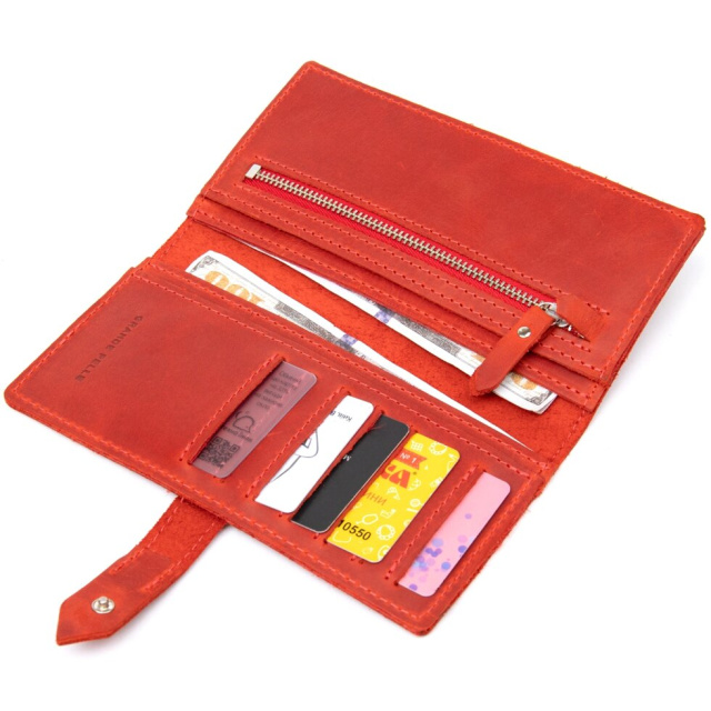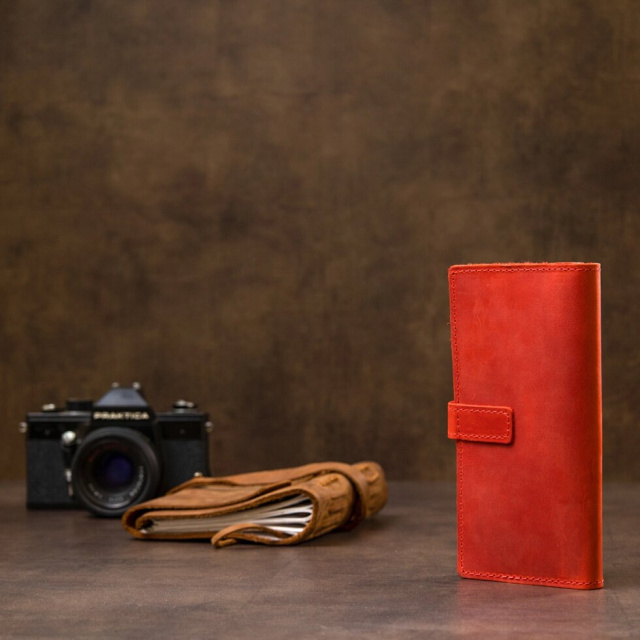 Чудове високоякісне портмоне в красивому червоному кольорі, що виглядає дуже жіночно і стильно. Фактура виробиу - вінтажна з ефектом старовини. Усередині присутні місткі відділення для купюр, кредитних карт і монет. Даний аксесуар стане прекрасним подарунком для будь-якої жінки.