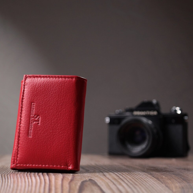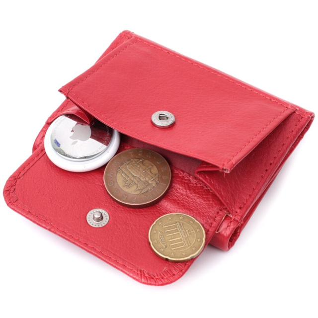 Яскравий гаманець для жінок із натуральної якісної шкіри. Модель має невеликі розміри, що закривається на магніт. Зовні можна побачити відділення для монет. Щоб не обтяжувати аксесуар, всередині розташований мінімальний функціонал: пару відділень для паперових грошей і два осередки для пластикових карт. Запакований аксесуар у білу щільну картонну коробку з фірмовим логотипом.